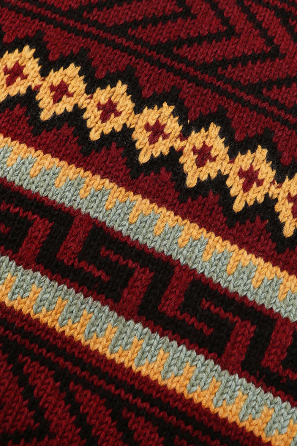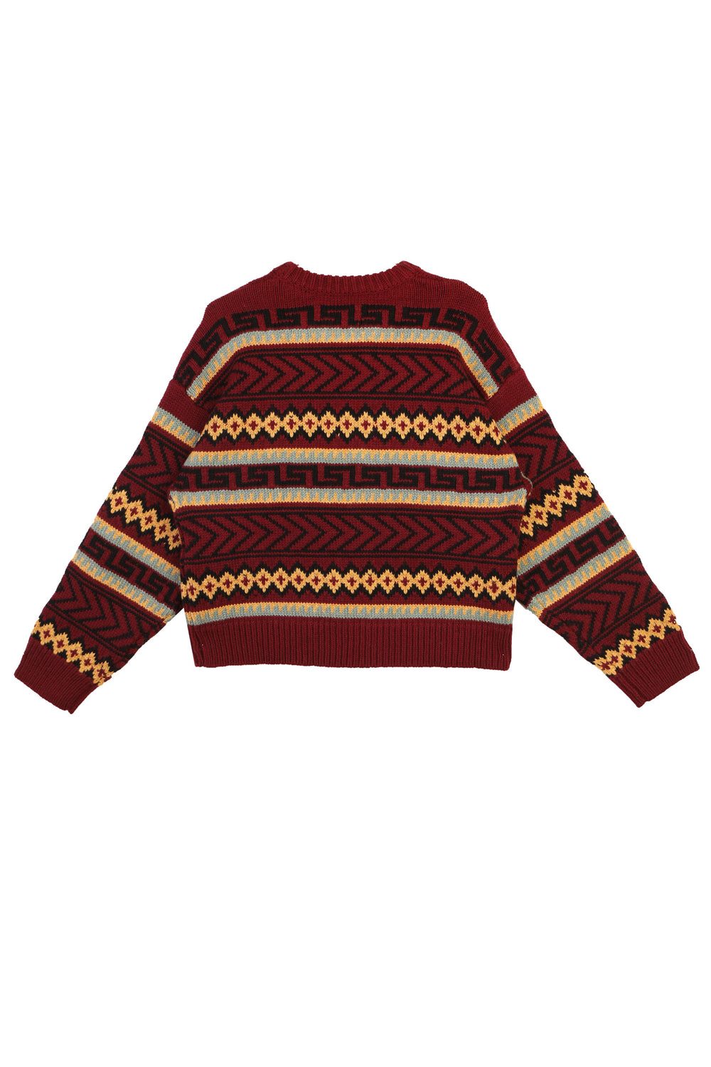 Wool. Knitwear. Burgundy Intarsia. Boxy shape.