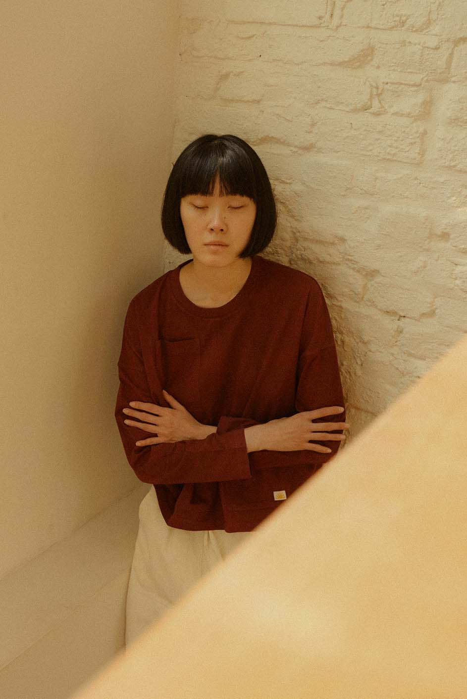 The Hamley Top is a relaxed fitting longsleeve tee with a boxy fit. With utility style pockets on the front and our mini sun woven patch logo.