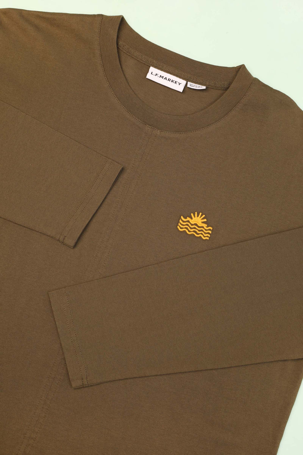 The Lesley Top is a relaxed fitting longsleeve tee with a boxy fit. In cotton jersey with our embroidered sun and wave logo on the chest.